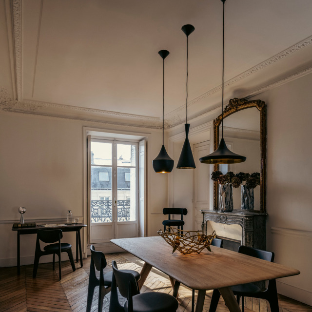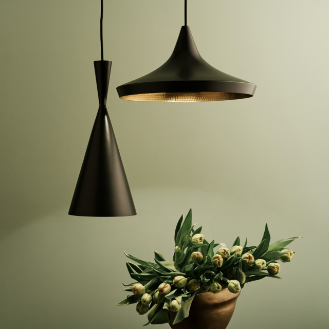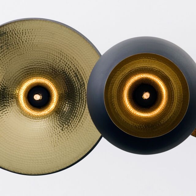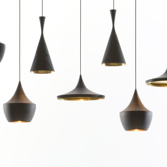 インドで長きに亘り培われてきた真鍮を加工する成型技術に着目し、トム・ディクソンが創作したのが「Beat (ビート)」であり、様々な製造現場で機械化が進む近年のインドにおいても、約4日間の時間をかけ、熟練した技術を持つ職人の手によって一つ一つ作られています。真鍮の板をモールド(型)に嵌めながら部位ごとの成型を行なった後、それらのパーツを溶接で繋ぎ合せ、その後ハンマーで丁寧に全体の成型を行ないます。この製造工程で創り出されるr(曲面)やbeat(打痕)の形状に一つとして同じものはなく、細かいゆがみや小さな凹みも個々の製品に刻み込まれる職人のフィンガー・プリントであり、それこそがBeat Lightがハンドメイドである証とも言えます。個体によっては多少の色ムラが発生しますが、陶器の釉薬と同様、制作時の環境によって作り出される天然のデザインとも言えます。真鍮という素材の特性上、設置されている環境によって様々な経年変化が発生しますが、お客様と共に歳を重ねる工芸品とご理解ください。