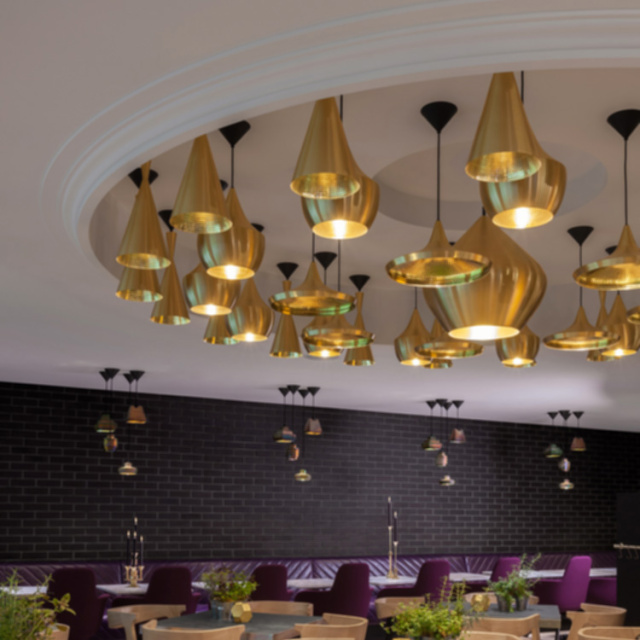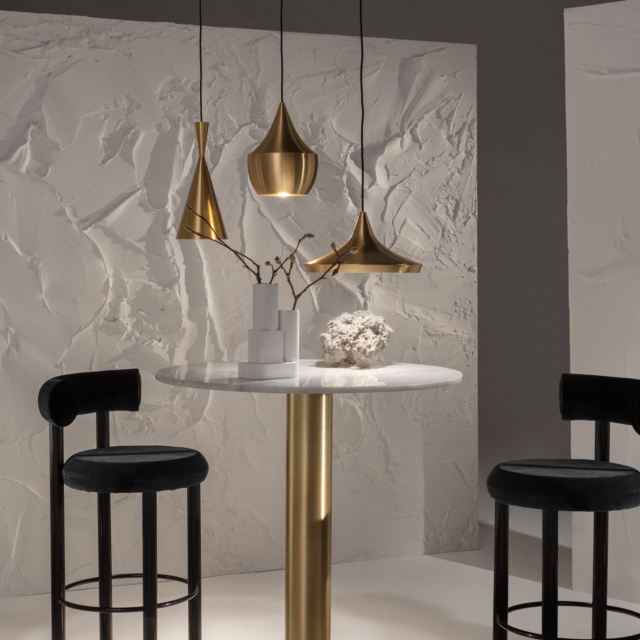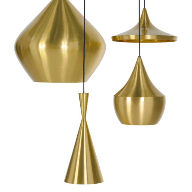 インドで長きに亘り培われてきた真鍮を加工する成型技術に着目し、トム・ディクソンが創作したのが「Beat (ビート)」であり、様々な製造現場で機械化が進む近年のインドにおいても、約4日間の時間をかけ、熟練した技術を持つ職人の手によって一つ一つ作られています。真鍮の板をモールド(型)に嵌めながら部位ごとの成型を行なった後、それらのパーツを溶接で繋ぎ合せ、その後ハンマーで丁寧に全体の成型を行ないます。この製造工程で創り出されるr(曲面)やbeat(打痕)の形状に一つとして同じものはなく、細かいゆがみや小さな凹みも個々の製品に刻み込まれる職人のフィンガー・プリントであり、それこそがBeat Lightがハンドメイドである証とも言えます。個体によっては多少の色ムラが発生しますが、陶器の釉薬と同様、制作時の環境によって作り出される天然のデザインとも言えます。真鍮という素材の特性上、設置されている環境によって様々な経年変化が発生しますが、お客様と共に歳を重ねる工芸品とご理解ください。