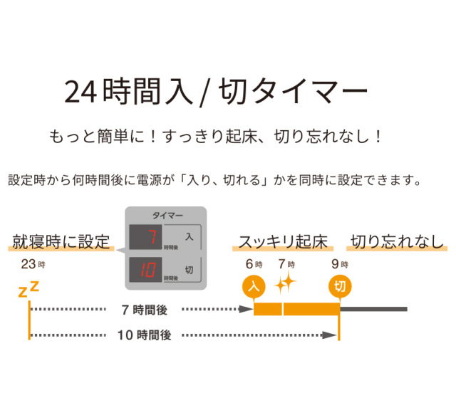 さらに、24時間ON/OFFタイマーやエコ運転モードなど賢くご利用いただくための機能も搭載しました。